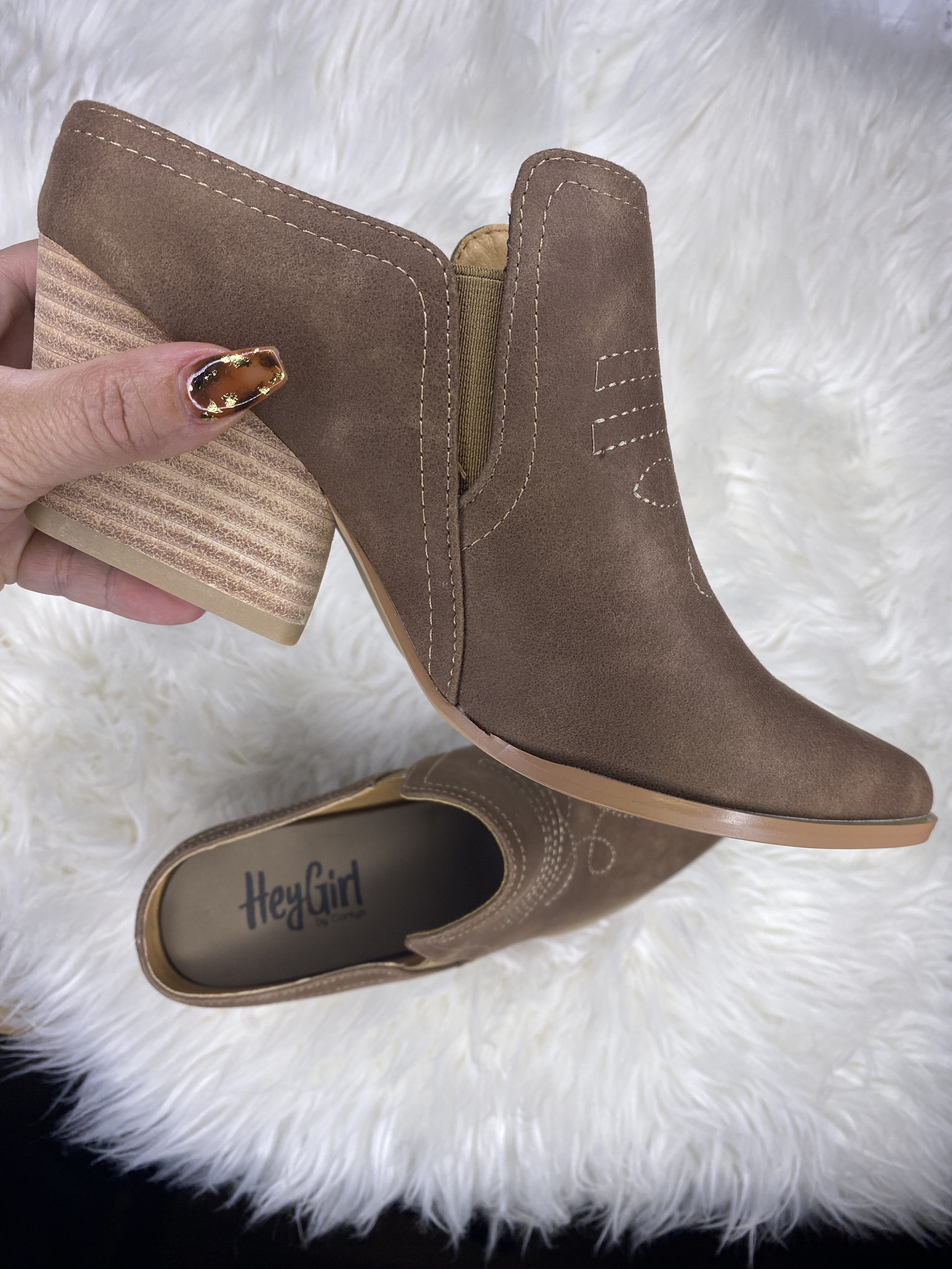 Almond toes style. EVA foam padding insole. 1/2 inch Lip closure on back. We recommend staying TTS for whole sizes. Generally half sizes round down to keep their foot fitted to the back, however wide feet need to size up in almond toe boots.