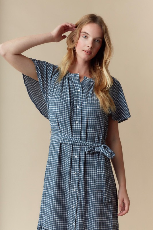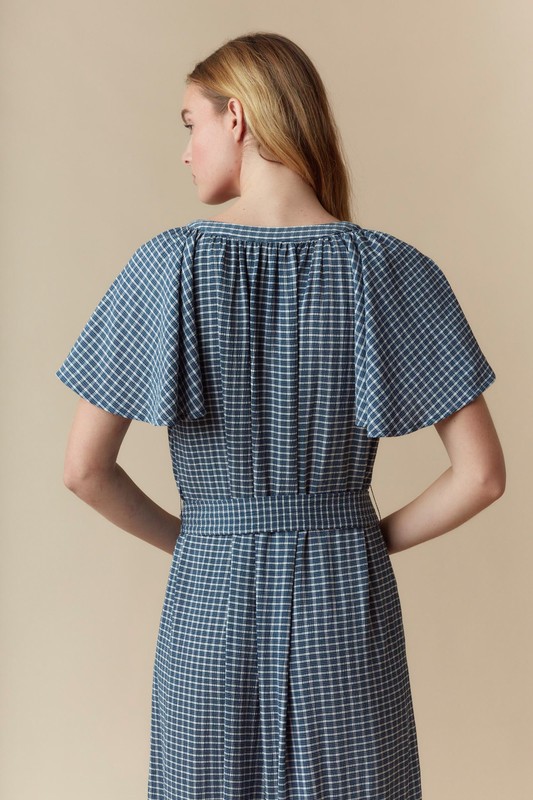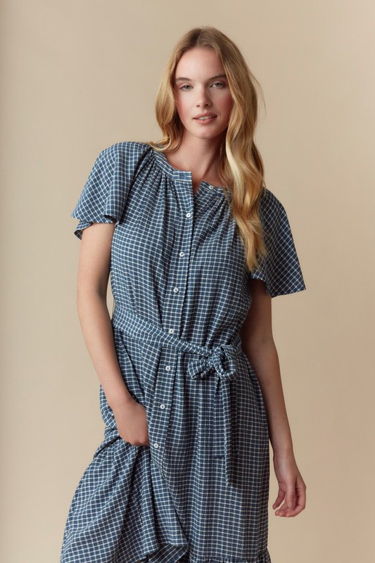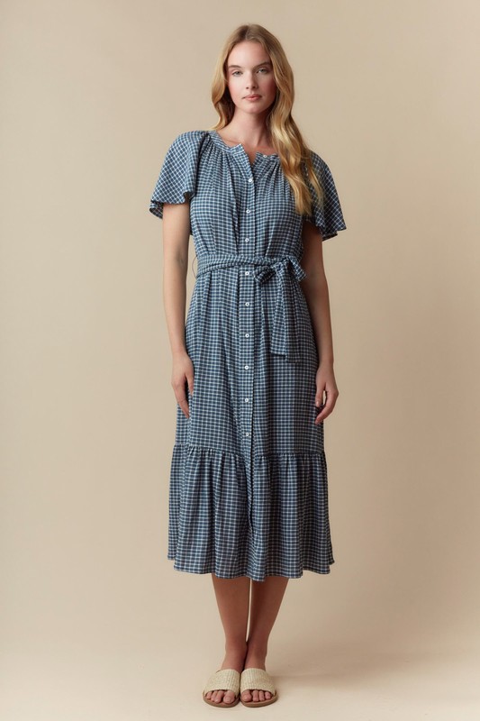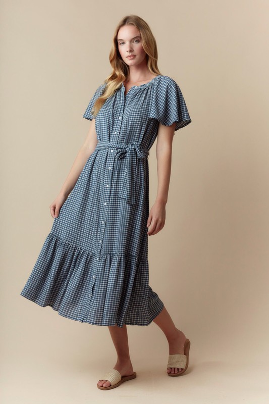 Plaid Tiered Midi Dress With Short Sleeve Dress