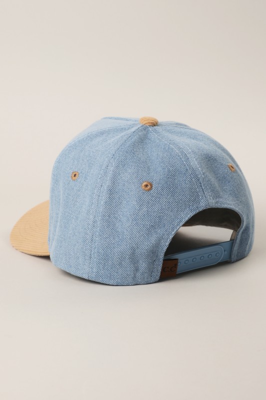 MAKE HEAVEN CROWDED Denim Corduroy Trucker Hat - MAKE HEAVEN CROWDED Lettering Logo Embroidered - 5 Panel Design Trucker Hat - 35% Cotton, 65% Polyester - Adjustable Snap Back Closure - Relaxed Fit and Pre-Curved Visor *One Size-Adjustable Snapback Fit.*