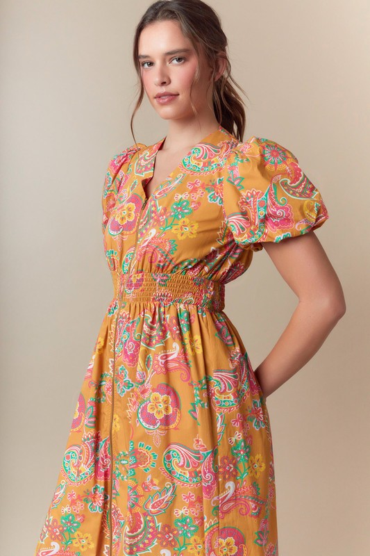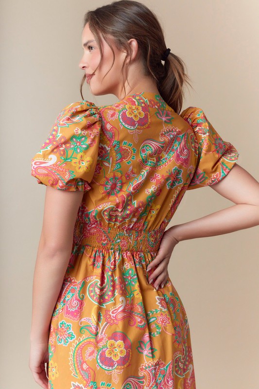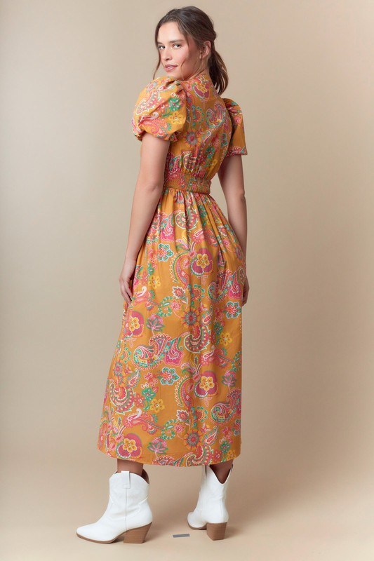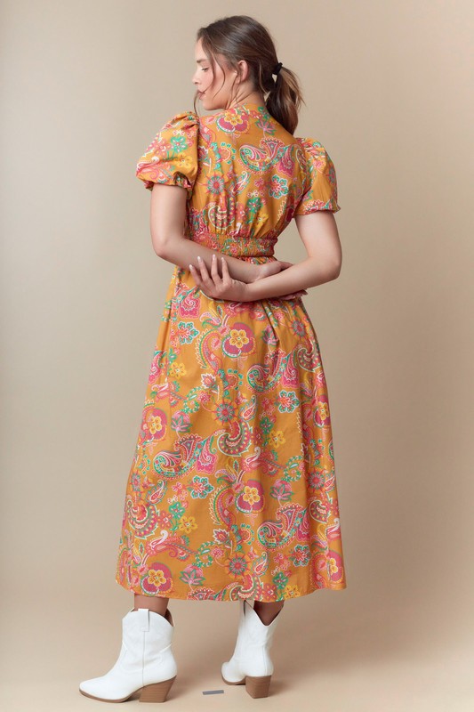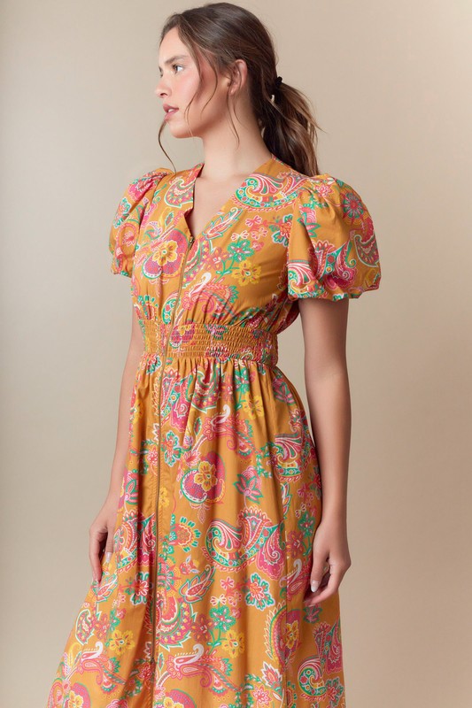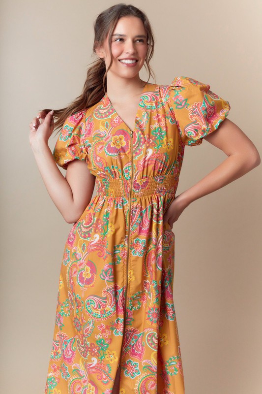 Paisley Print Woven Zipper Front Midi Dress Non-returnable