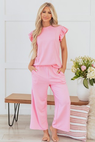 Quilted textured pant set . The top is more fitted than previous pant sets we have sold. Small – 4-6, Medium 8-10,Large 12-14 , XL 16-18.