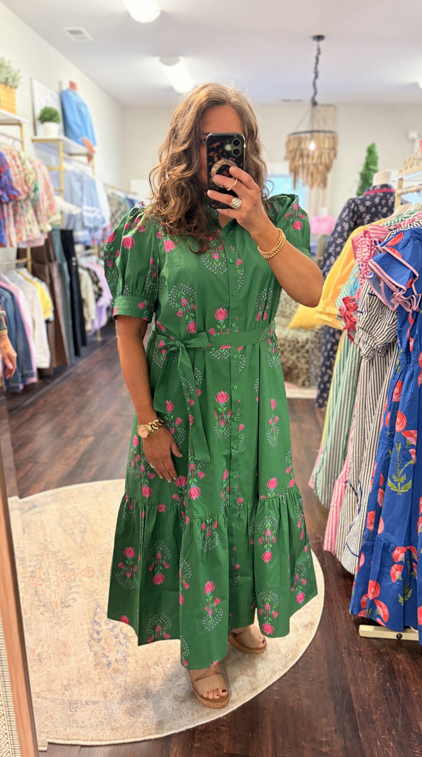 / Sugarlips Green and Pink Waste Knot belted dress
